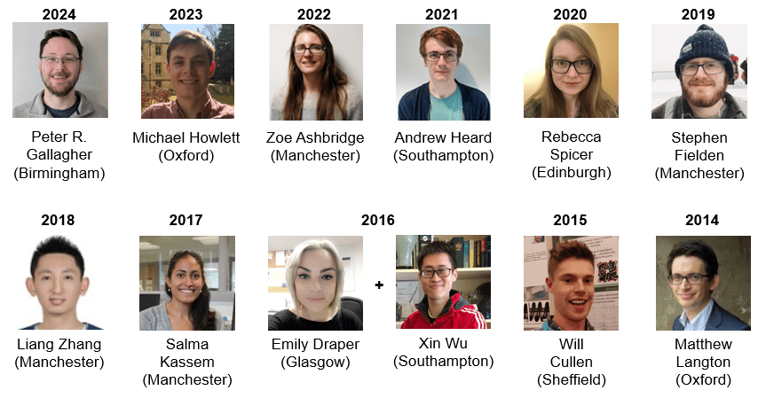 - 2015 – Dr Will Cullen (University of Sheffield, supervised by Mike Ward)